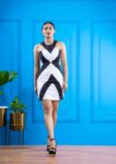 The Black & White Charm dress combines sophistication with modern flair, crafted from bubble lycra for a soft yet structured feel. The fabric offers a gentle stretch that moves with you, ensuring a comfortable fit throughout the day. Featuring a bold black-and-white design, the dress creates a stunning visual contrast, making it perfect for a variety of occasions—from professional settings to evening events. Its form-flattering cut highlights the waist, while the breathable material ensures comfort without compromising on style. Elevate your wardrobe with this chic and versatile piece..