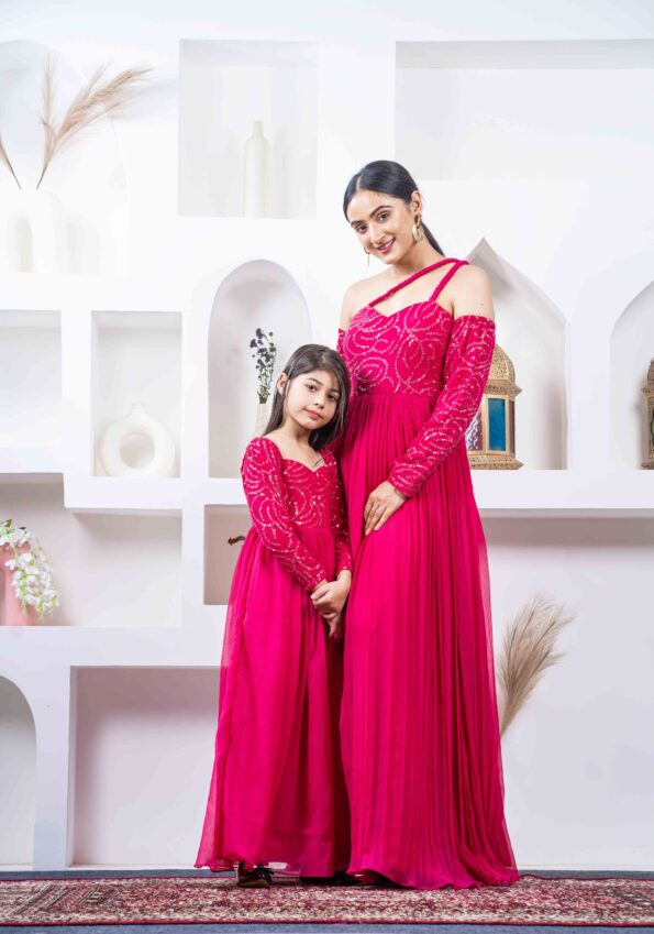 Embroidered Pink Gown Mother-Daughter Duo Set (Family Wear)